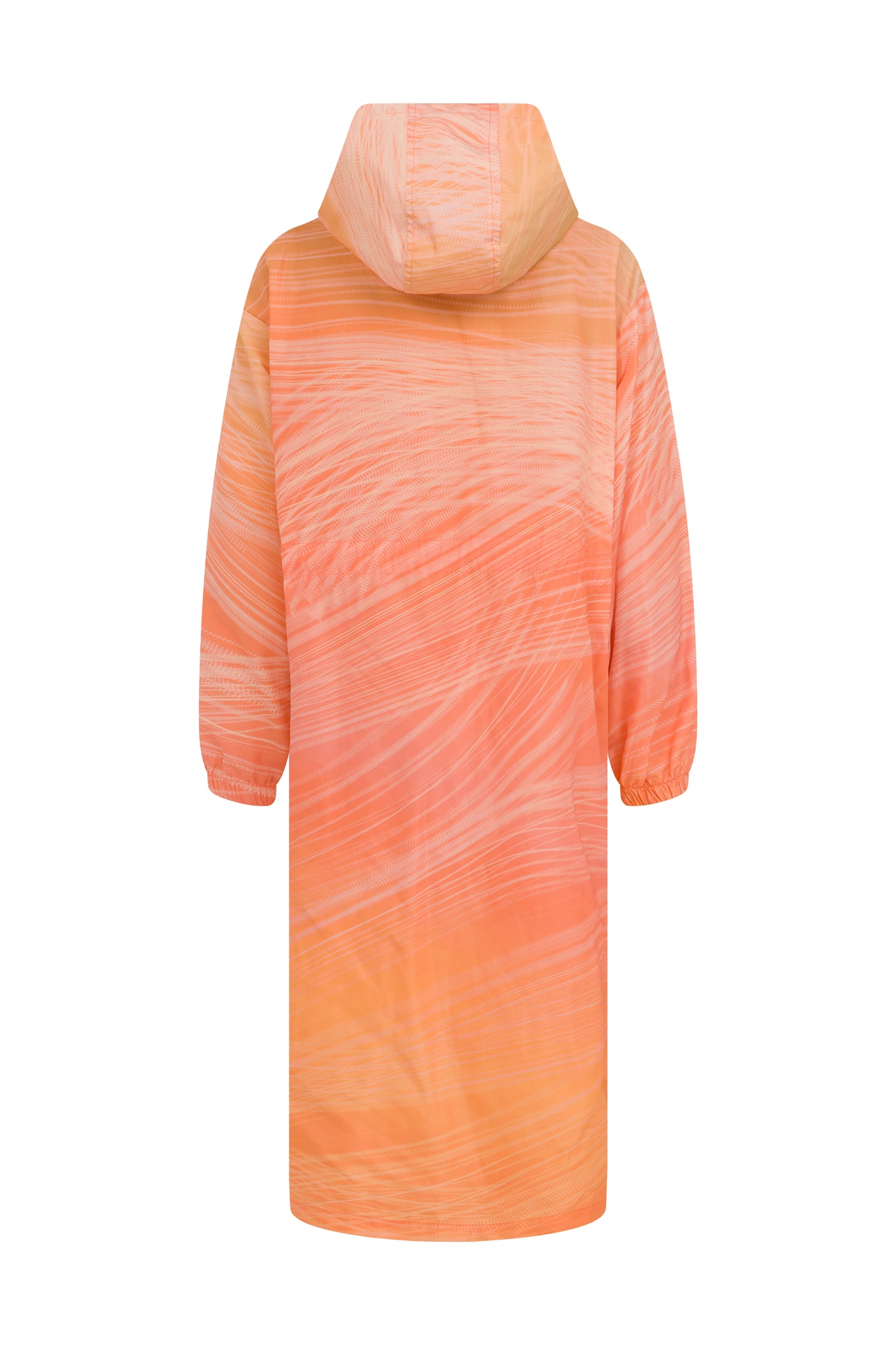 Unpredictable weather calls for lightweight seasonless outerwear just like Citrus Haze Raincoat. This lightweight statement piece captures the soft radiance of a sunny sky through hues of apricot, coral, and lime mist, blending in a hazy gradient that feels both energising and serene. The raincoat effortlessly meets high technology wrinkle resistant, waterproof coated-shell. The fishtail hem is slightly longer at the back for additional coverage. Fits all the sizes between UK 6 and UK 24. The relaxed fit can be tempered with drawstrings at the waist. The detachable hood is generously sized to keep you dry. Concealed snap fastenings through front. Perfect outerwear for layering.